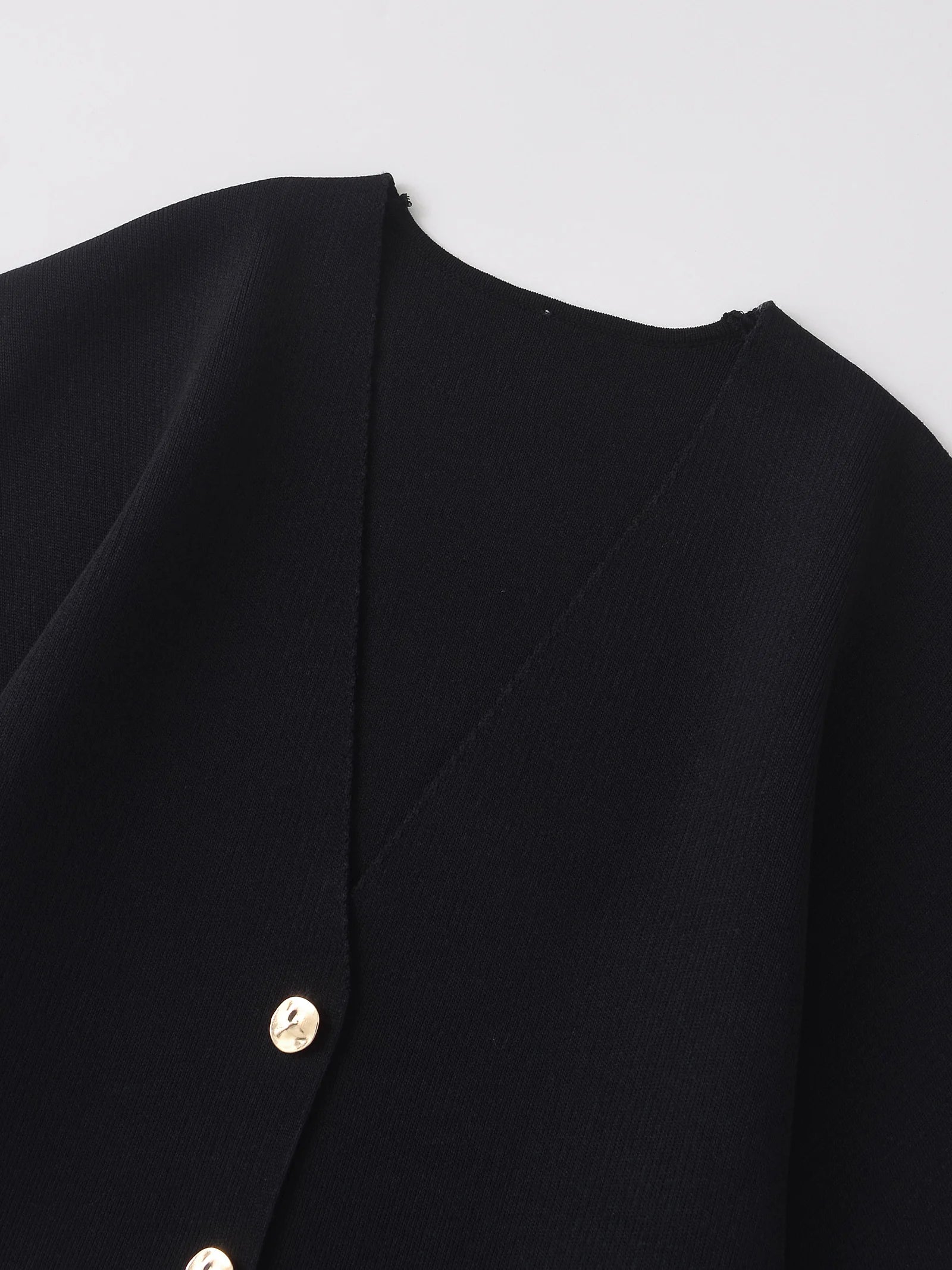 Diese Kurzarm-Strickjacke ist ein vielseitiges und schickes Basic für jede Garderobe. Mit ihrer weichen, cremeweißen Strickstruktur und dem tiefen V-Ausschnitt bietet sie eine minimalistische, aber stilvolle Optik. Die zwei hellen Knöpfe in Holzoptik setzen einen dezenten Akzent und ergänzen das schlichte Design perfekt.
