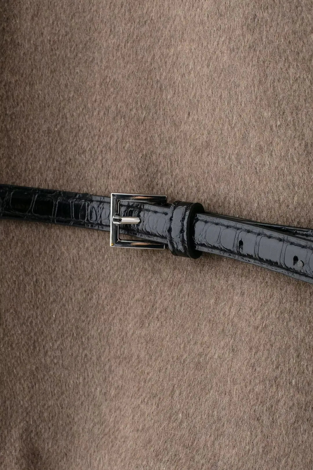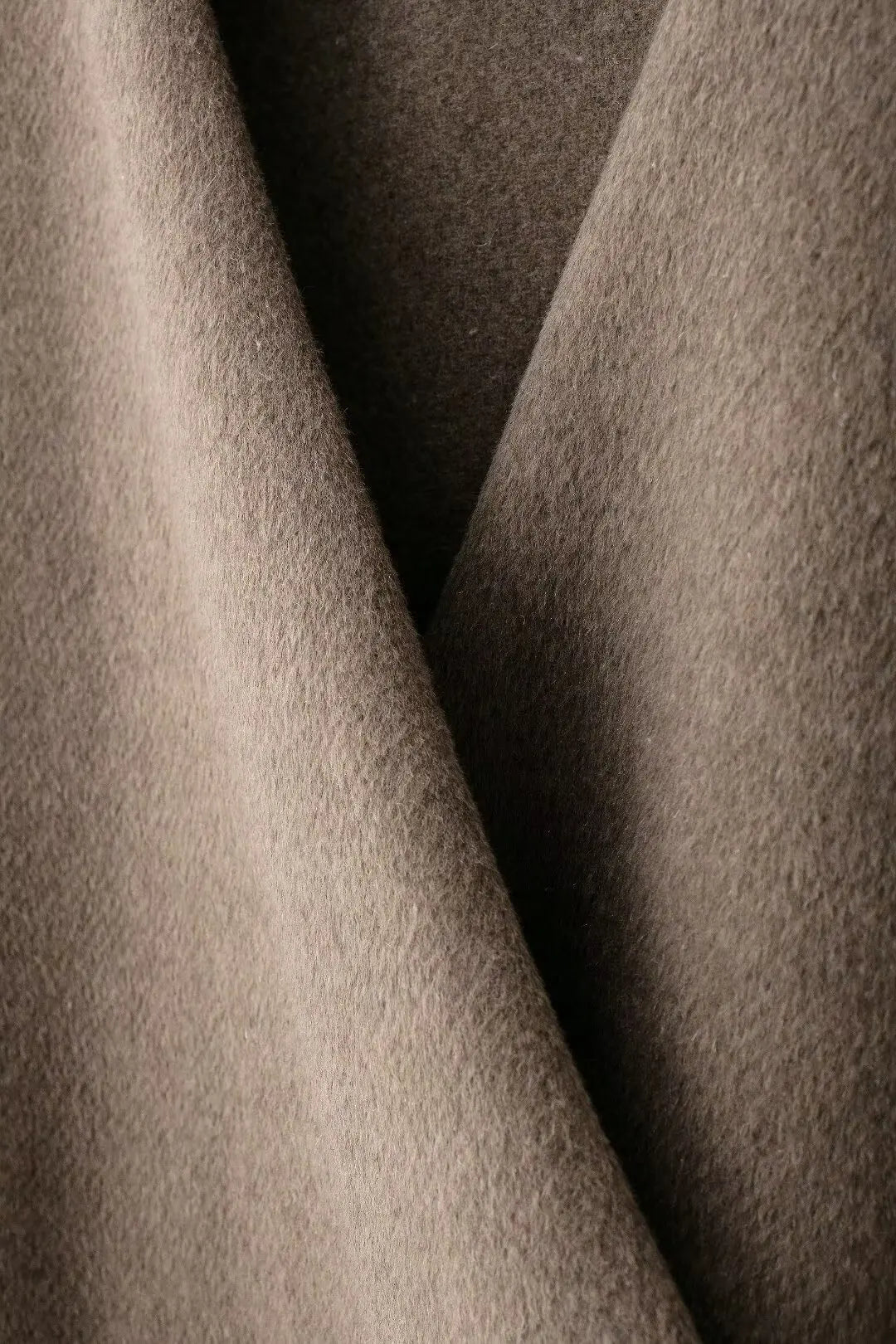 Couture-Finish: Elegante Woll-Wickeljacke in Mokka mit Taillengürtel